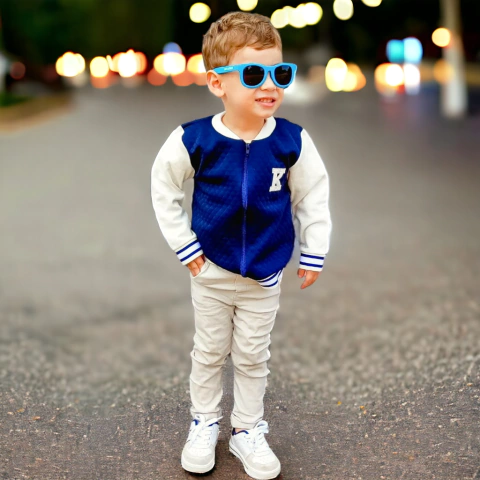 Jaqueta colegial de matelassê com moletom - Menino